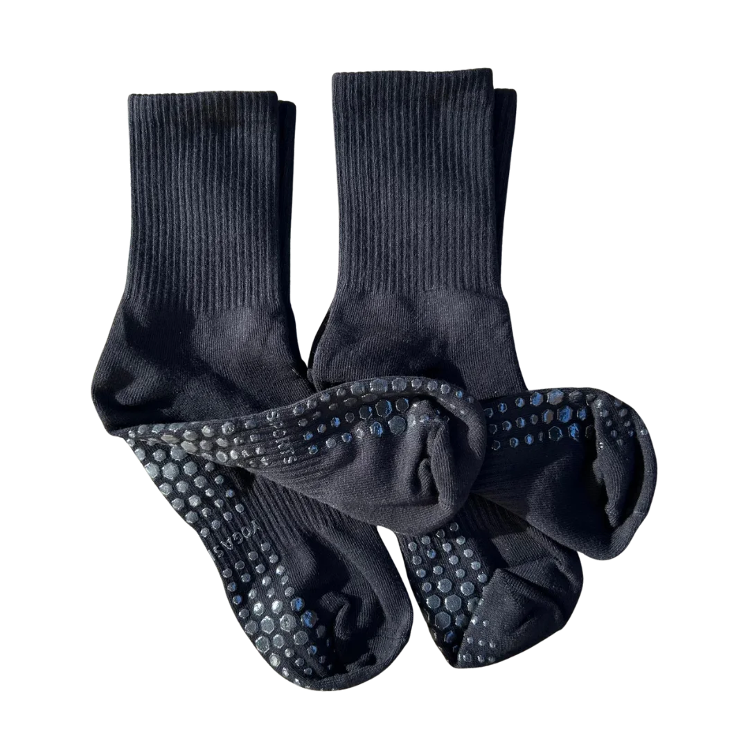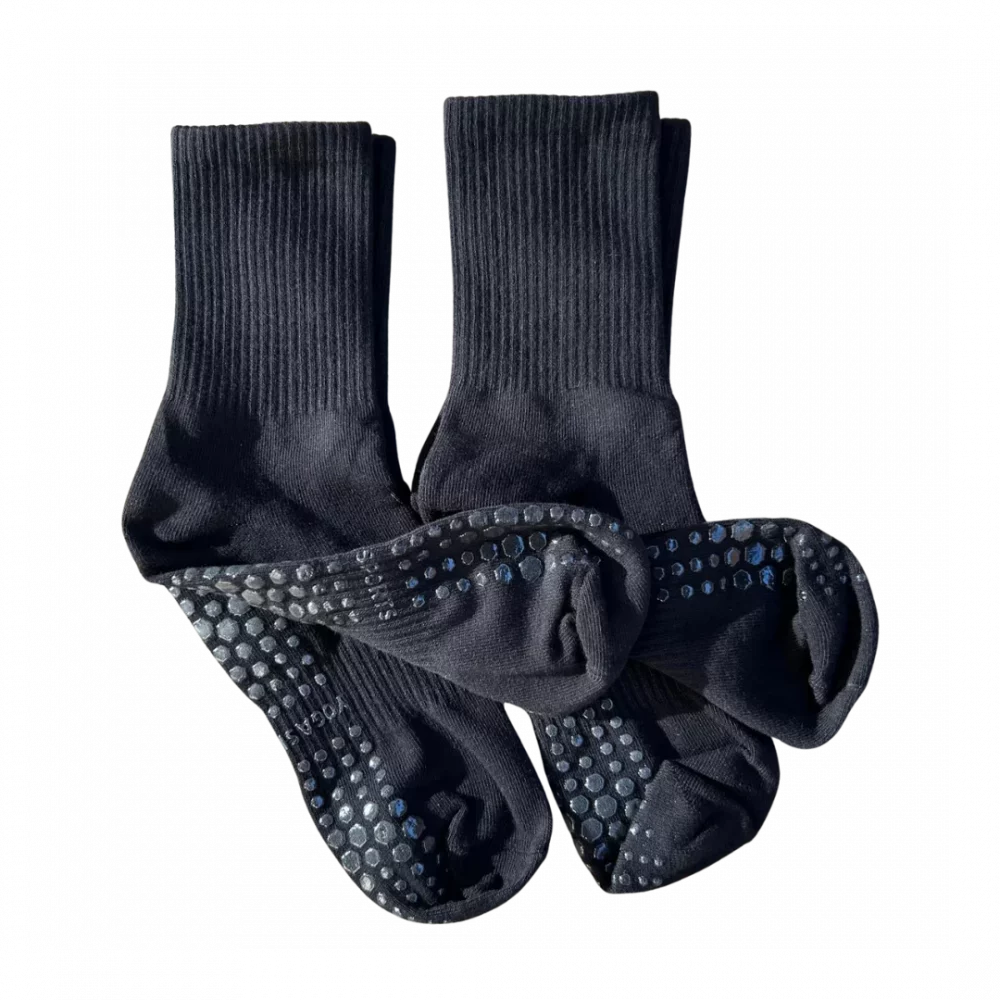 Chaussettes antidérapantes noires, taille unique (jusqu’au 41-42), montantes mi-mollet, offrant confort, maintien et meilleure stabilité au quotidien.