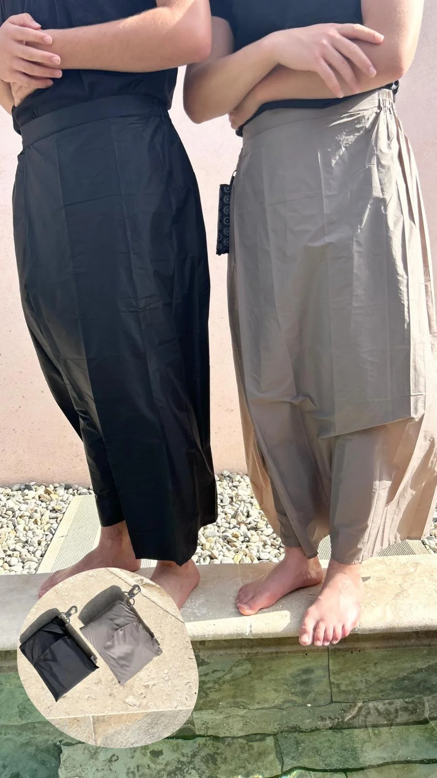 Offrez-vous la liberté de prier à l’heure, où que vous soyez, grâce à notre isar de prière pour homme ultra-compact. Ce sarong innovant est léger, discret et facile à transporter dans n’importe quel sac, poche ou même accrochable à un porte-clé grâce à sa pochette de rangement de seulement 13 x 11 cm !