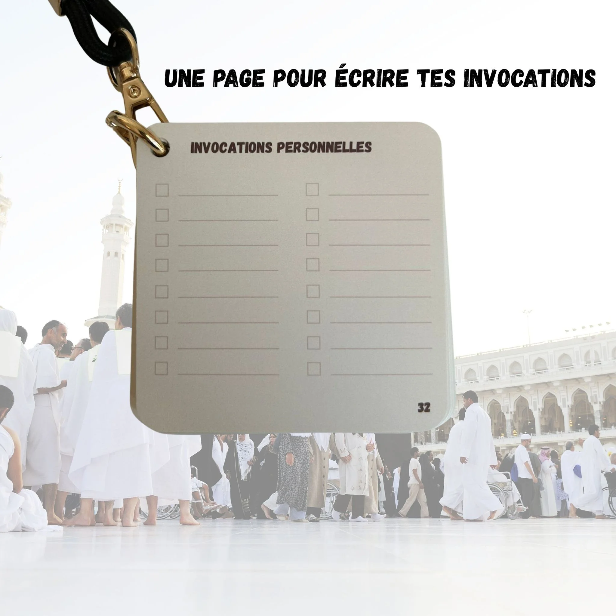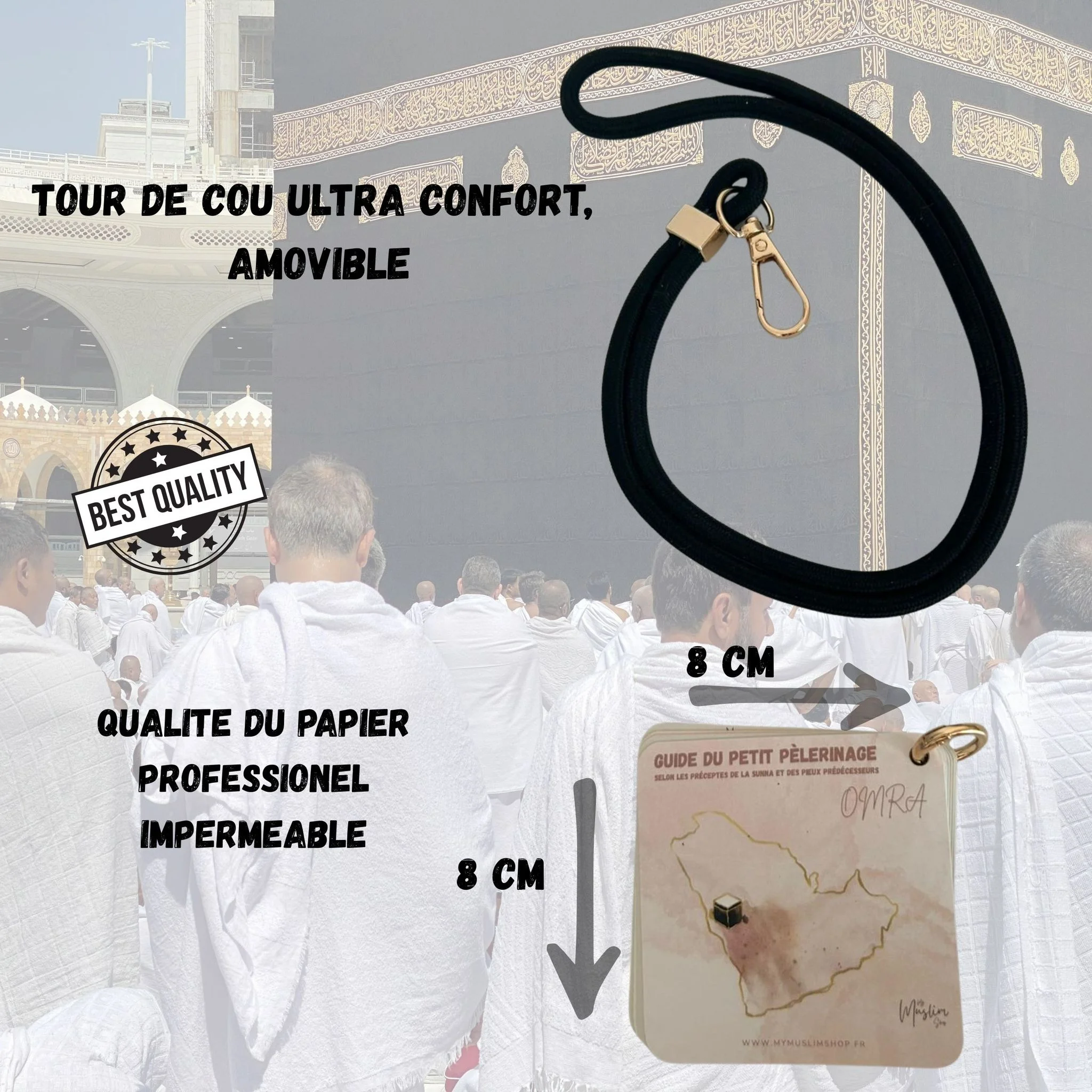 - Tour de cou inclus : Pratique pour avoir le Mini Guide de la Omra toujours à portée de main.