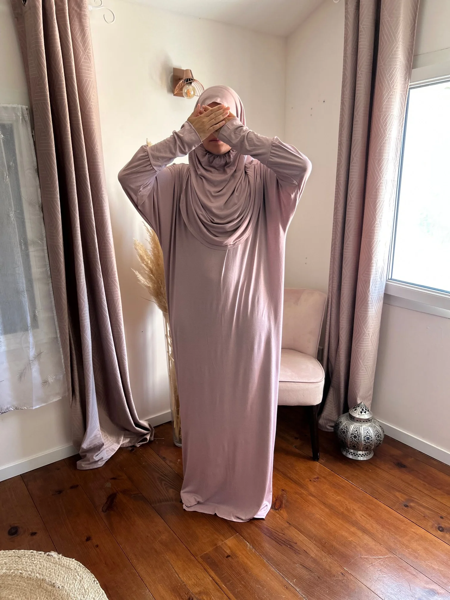 - Confort et légèreté : Son tissu léger et fluide permet une grande liberté de mouvement. Que tu pries en intérieur ou en extérieur, cette robe de prière confortable reste agréable à porter, même en été.